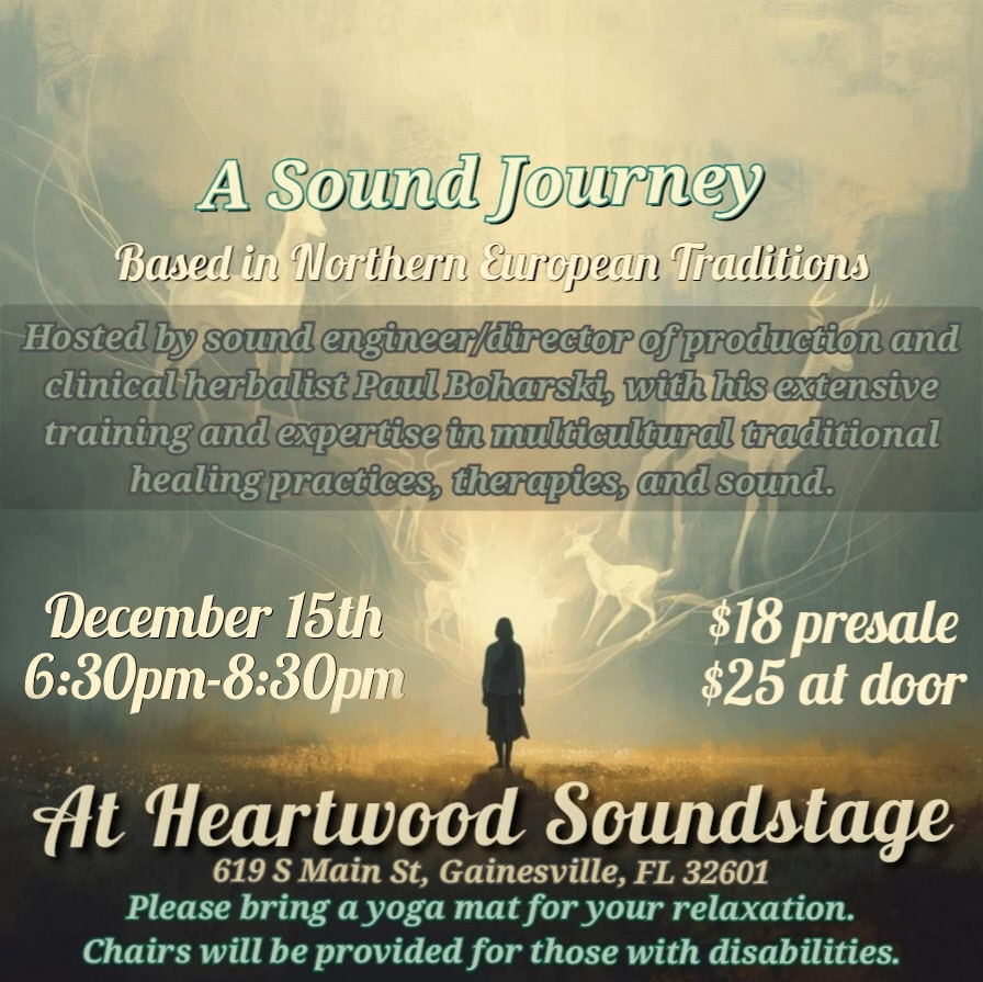 A Sound Journey is hosted by Paul Boharski, a sound engineer & director of production at Heartwood. Paul has spent the last decade as a practitioner in the holistic, medical, and traditional healing career fields. He has Elders that span cultures from five continents and has a degree in sound engineering with almost seven years in the music industry. This class will help introduce the practice of finding your personal spirt animals. Participants will go over the origins of the practice, sit in a sound journey to find theirs, and talk about what it means to have an animal come through and what to do once you’ve established a relationship with them.