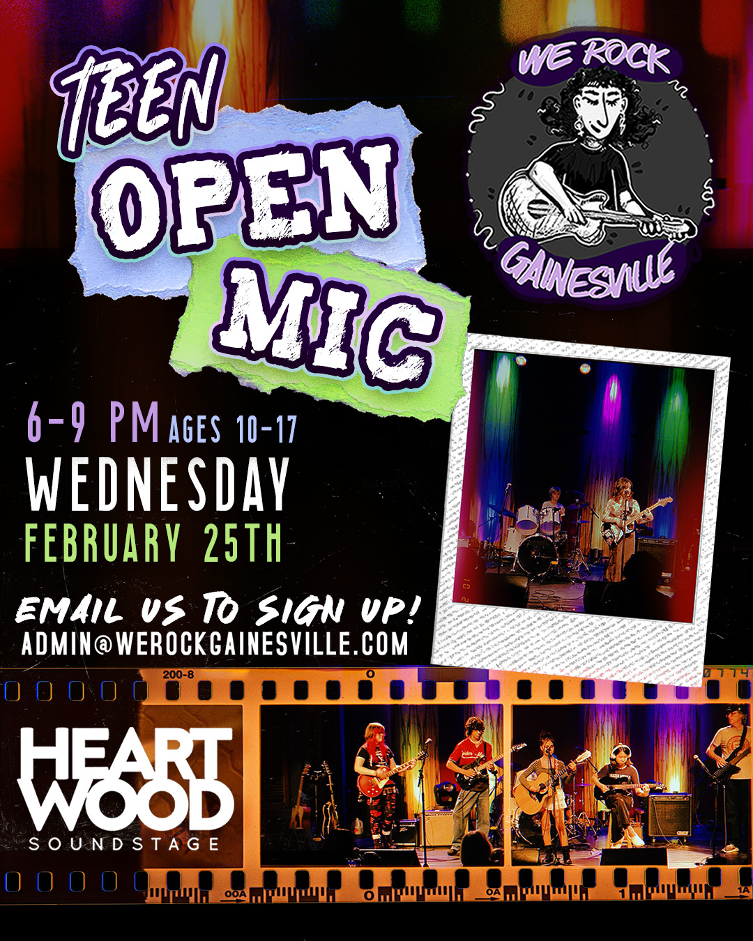 Come to Heartwood for a Teen Open Mic hosted by We Rock Gainesville!